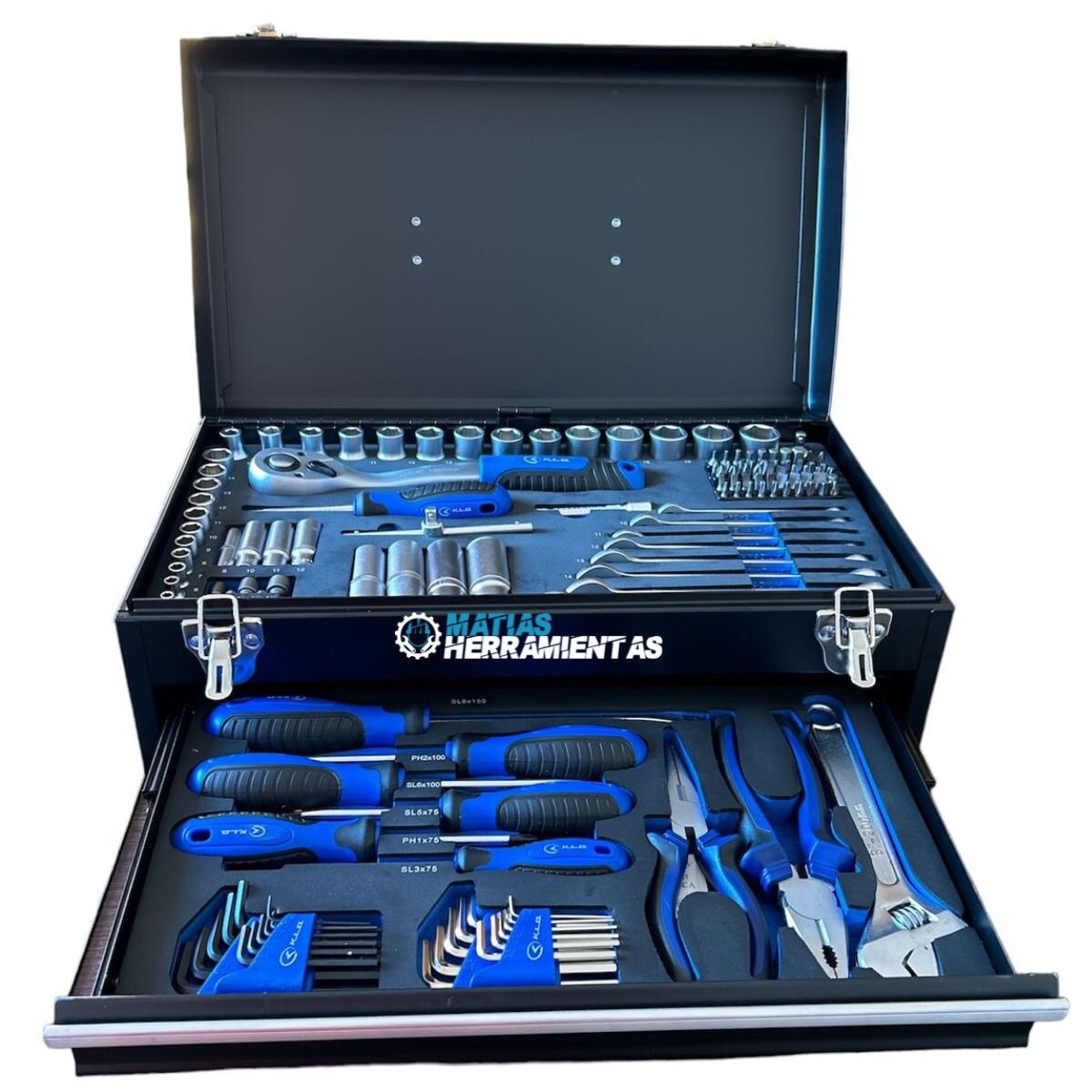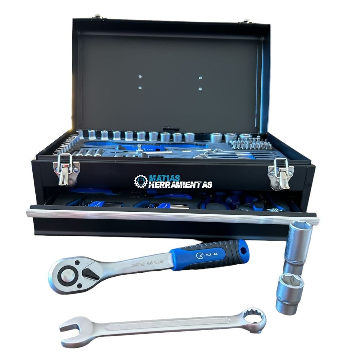 SET DE HERRAMIENTAS Y TUBOS 133 PIEZAS CAJA METÁLICA KLD